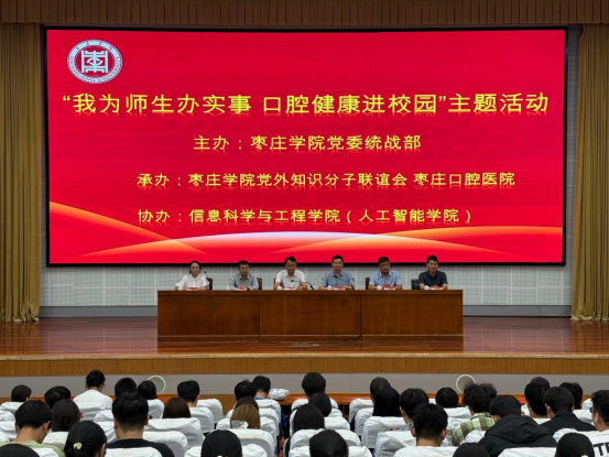 专题讲座环节,枣庄市口腔医院牙体牙髓科主任、山东大学硕士研究生钟东青为在场师生作了精彩的口腔健康讲座。信息科学与工程学院(人工智能学院)师生踊跃参与,现场互动热烈。讲座围绕智齿养护、牙周健康、龋齿防治、正确刷牙方法等老员工群体关注的口腔问题展开,内容生动实用,师生受益匪浅。